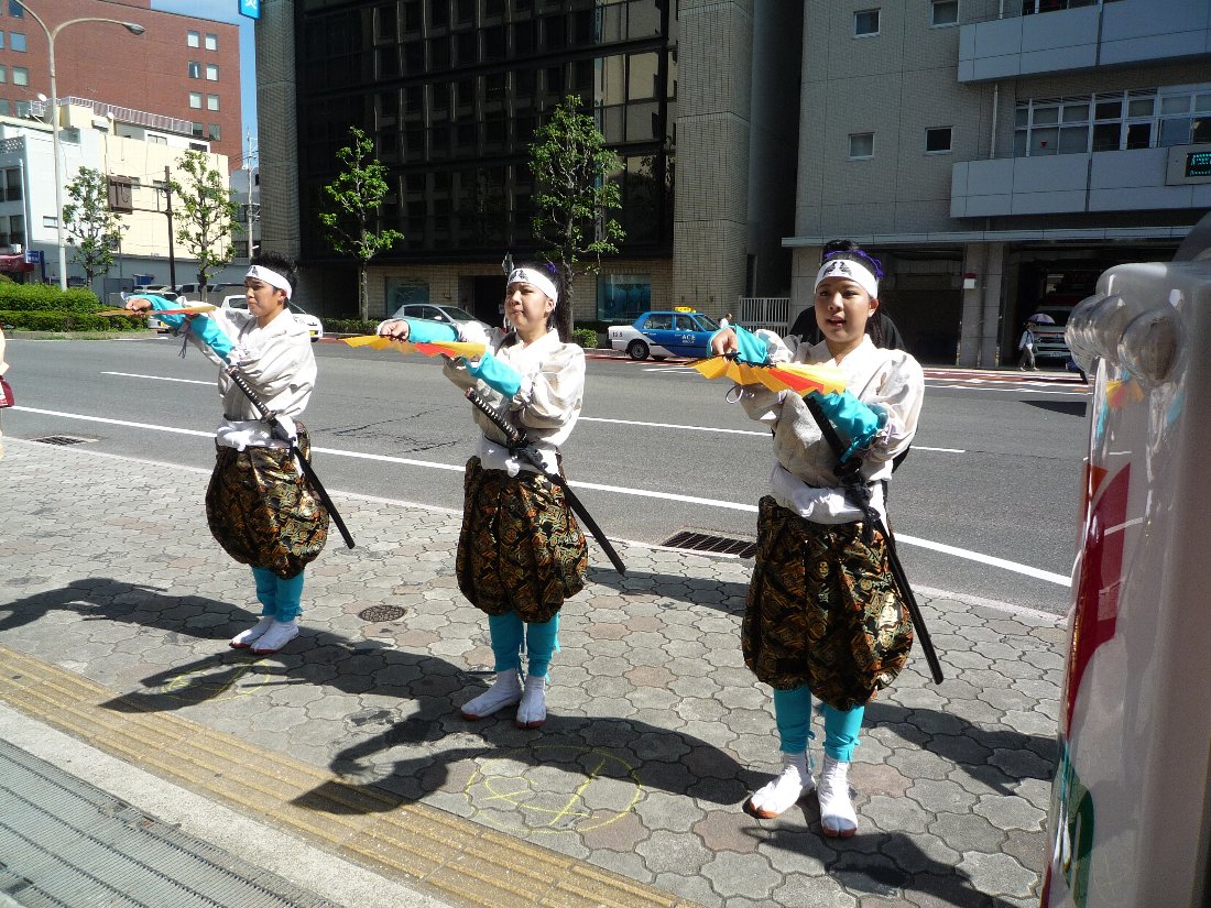 何ヶ所か回った後で「ハマクロス411」前で長めに演技をするので待ち構えている人が大勢いました