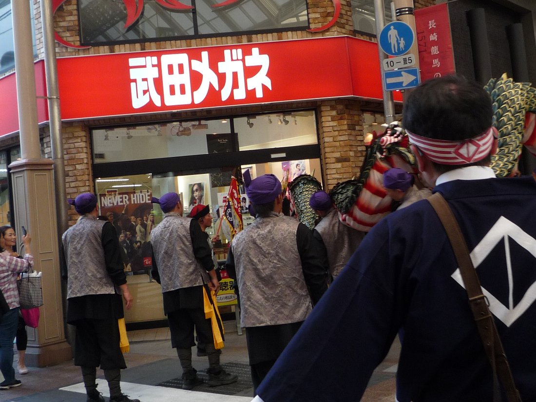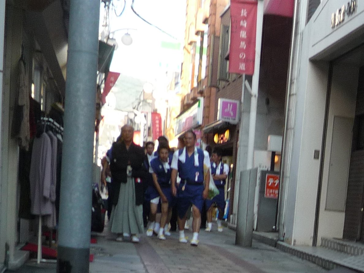 「長崎市立図書館」近くのビルでやっていたのは「八幡町 剣舞」ですが