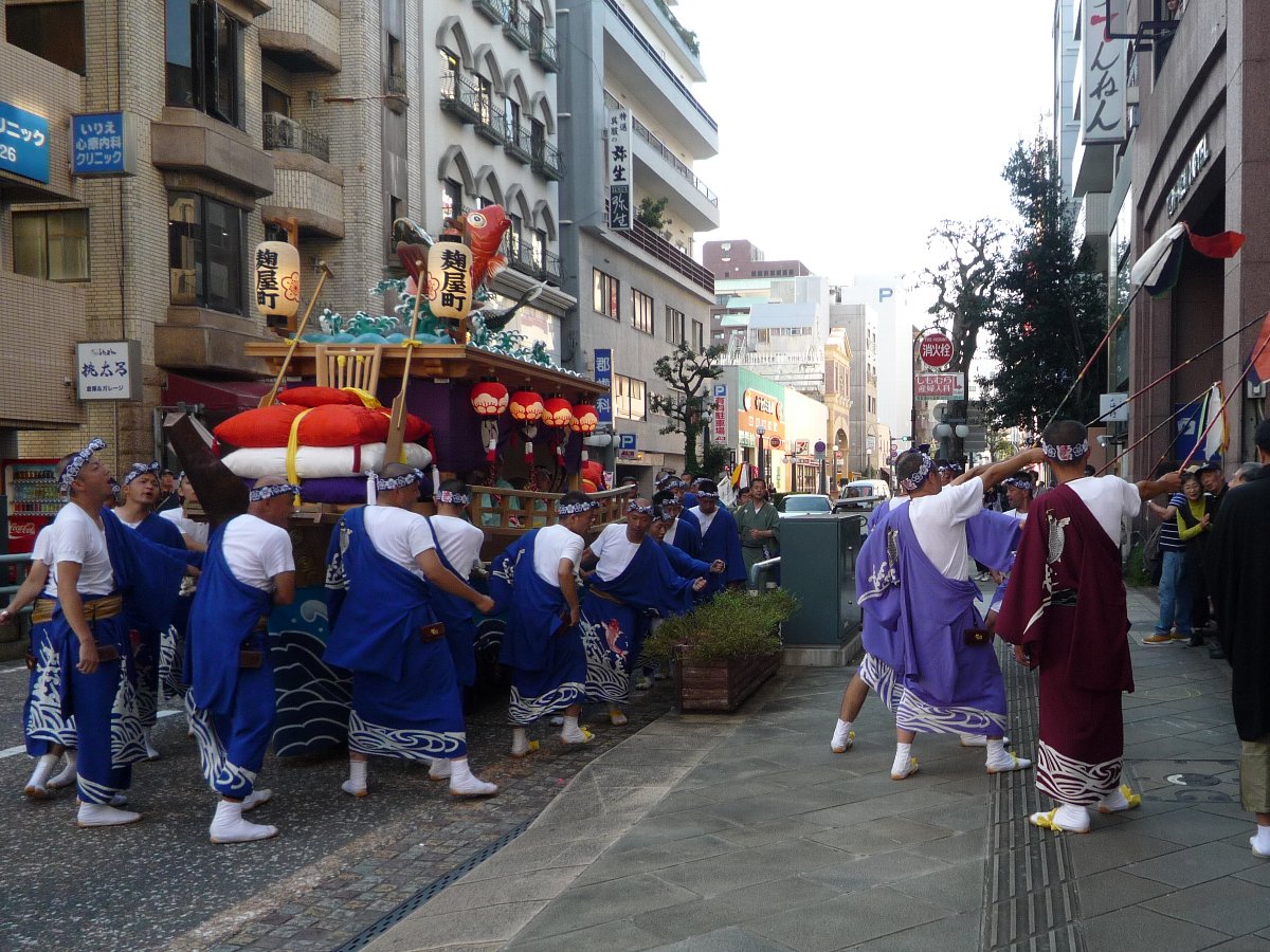 中通りを戻っている途中で「お上り」を終えた「十善寺地区神輿守奉賛会」の人たちに遭遇しました