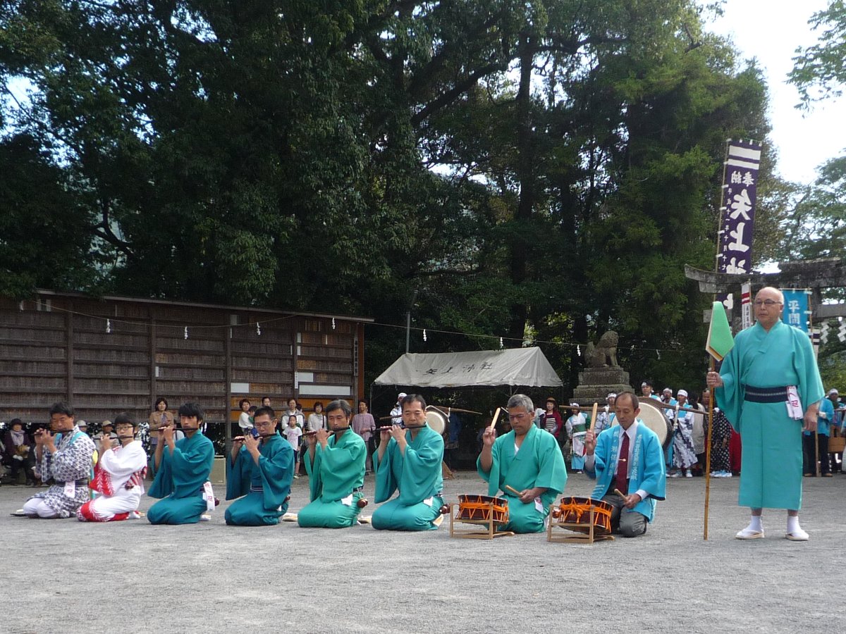 午前9時になると挨拶があり最初に登場したのは間の瀬地区のシャギリの演奏です