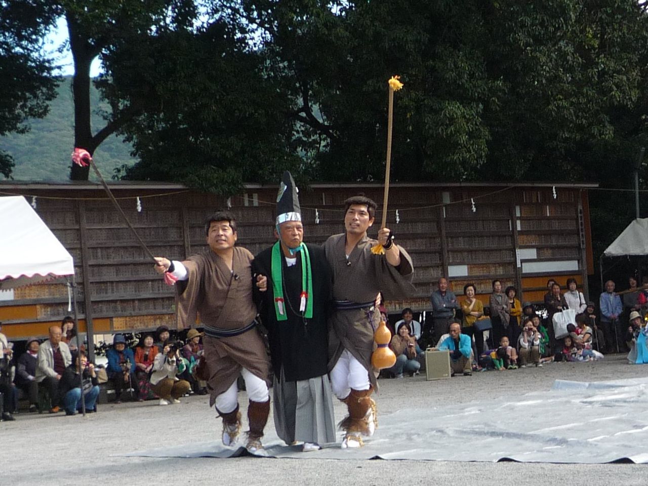 この3匹の猿と先ほどの二人とが鳴り物に合わせてコミカルな動きを繰り広げます