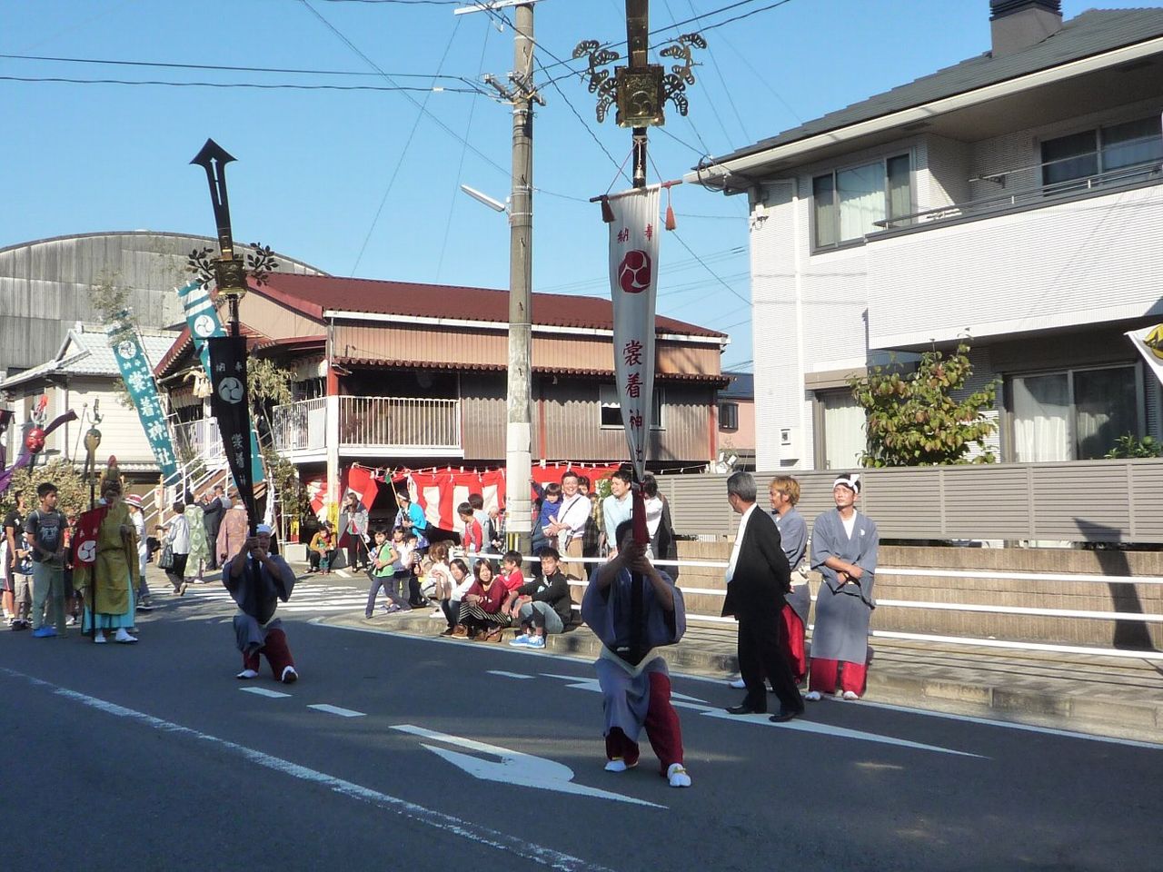 お下り同様この国道を疾走しますが見るからに重そうなお神輿ですから大変でしょうね・・・隣で見ていたお年寄りによると「背が低っかもんは肩に乗っとらんから背の高っかもんだけで担いどるからきつか」そうです^^;