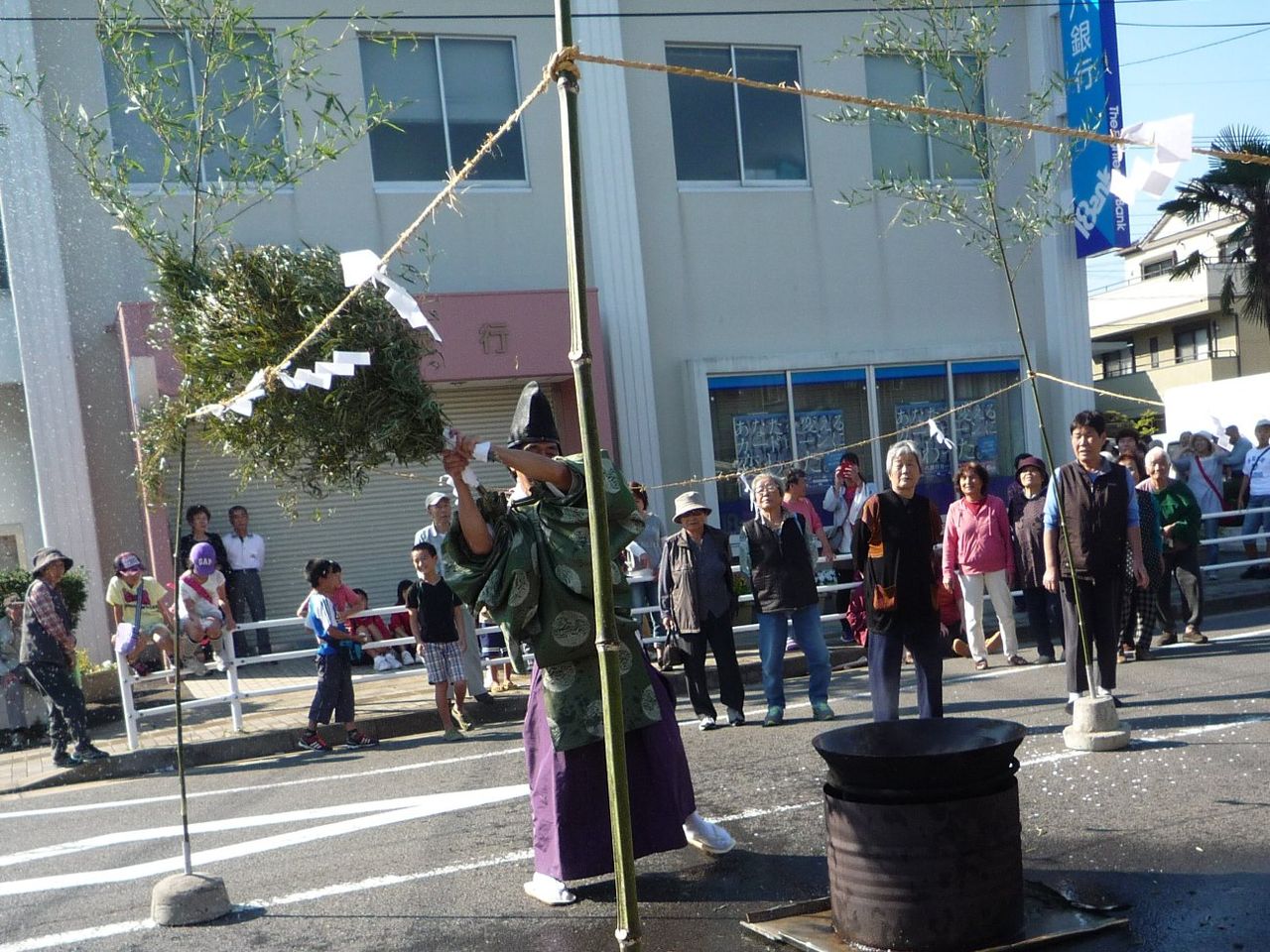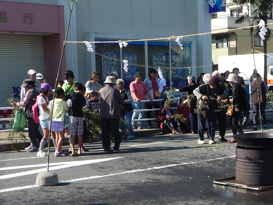 最後に使った竹を後ろに放り投げると集まった人たちが分け合っていました