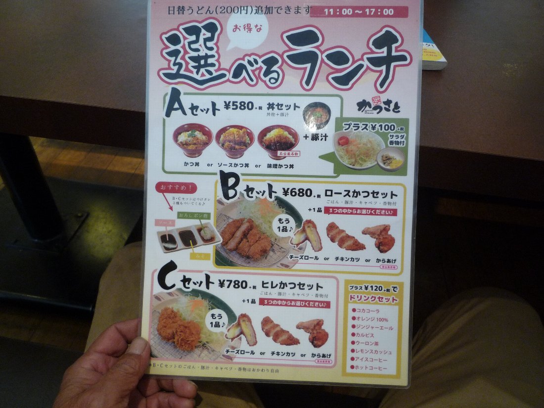 こちらが「かつさと イオン大村店」ですが愛知県の田原市に本部がある全国チェーンのとんかつ屋さんだそうです・・・どうりでメニューに「味噌カツ」が並んでいますね(^^;