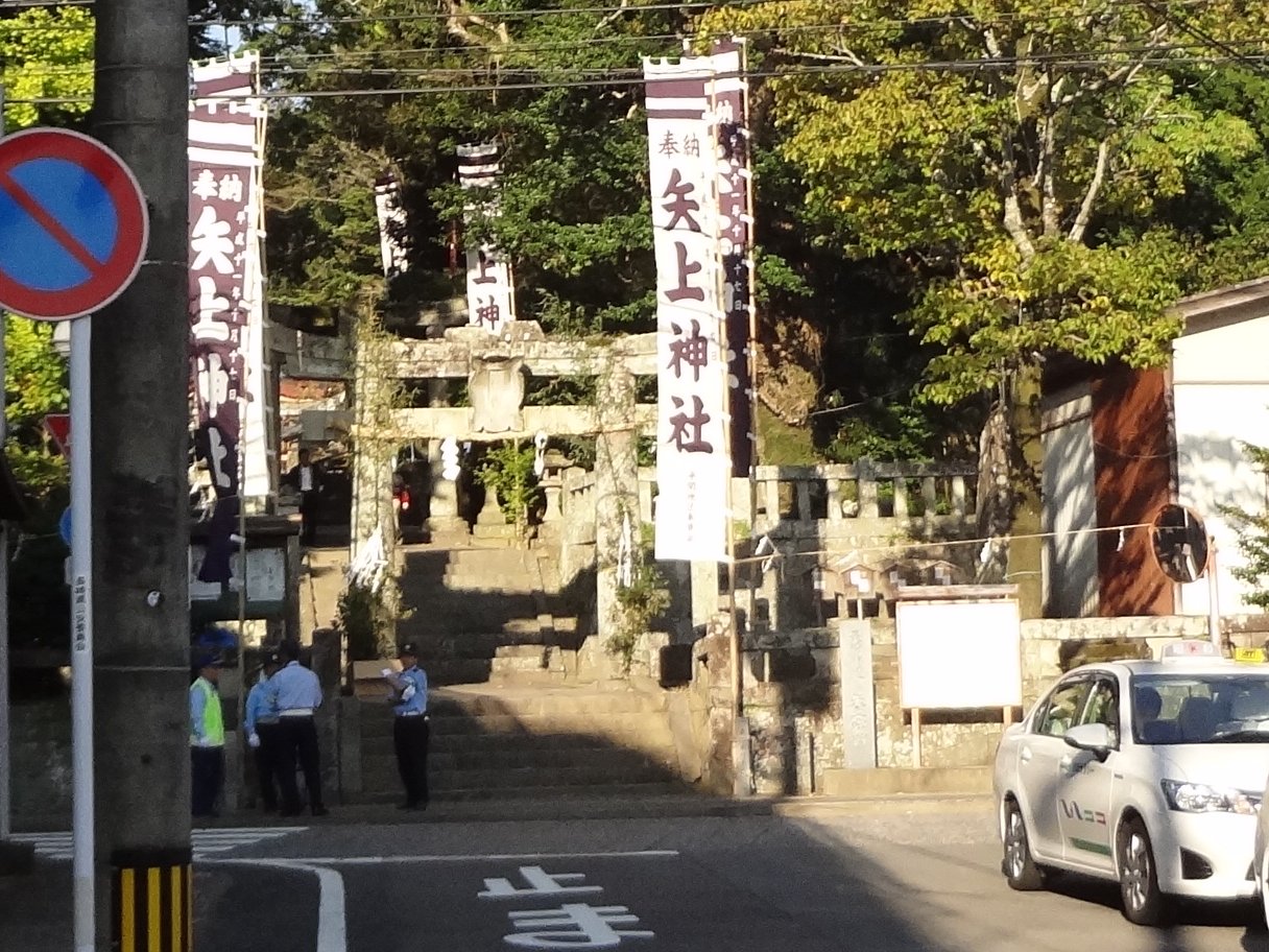 土曜日というせいで道が混んでいなくて会場の矢上神社に到着したのは開始45分も前でしたから例年だと神社前で待っている奉納踊り参加者たちもまだ姿を見せていませんでした(^^;