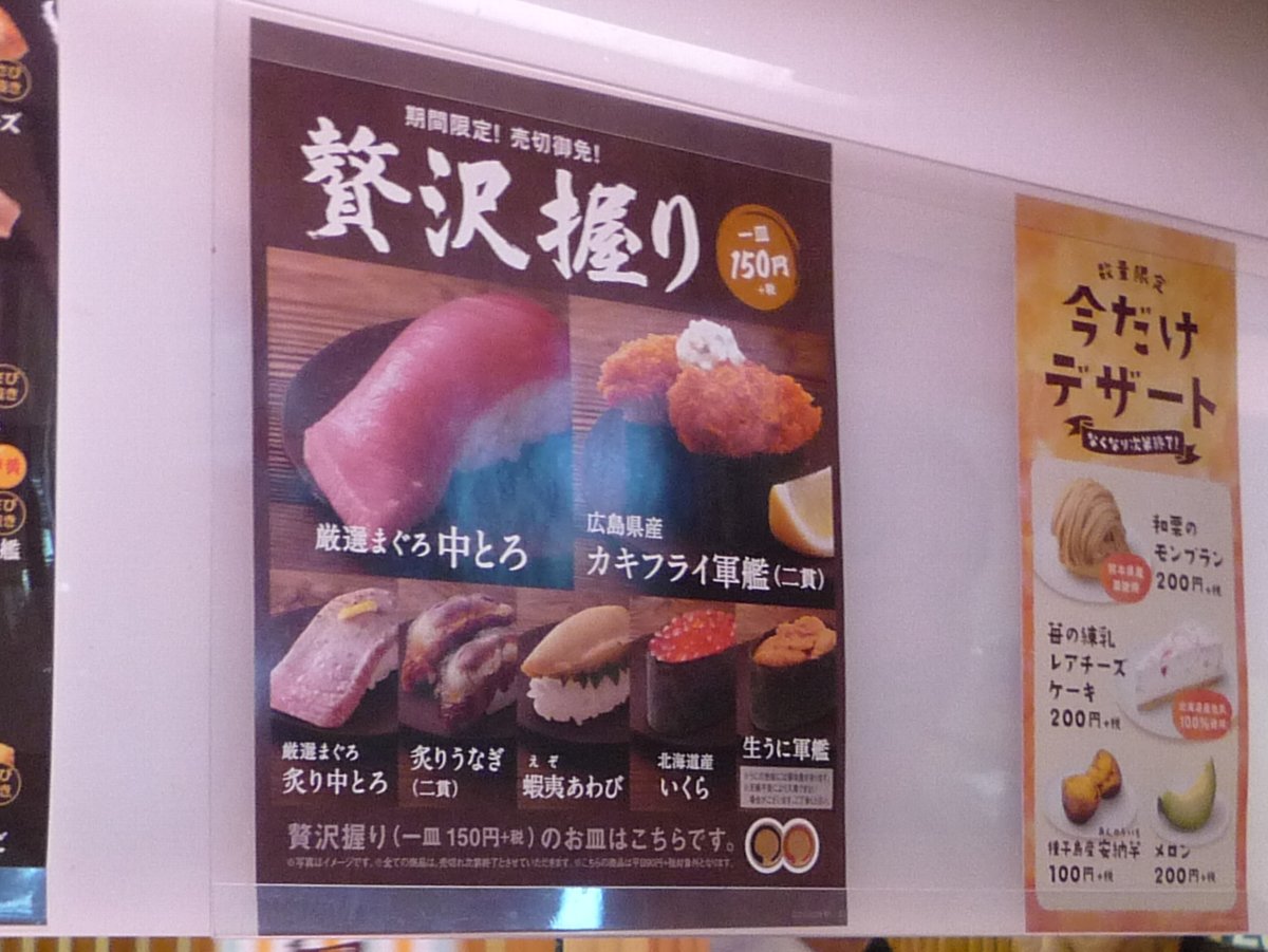 「贅沢握り」という案内があり「カキフライ軍艦」があったので注文しましたが