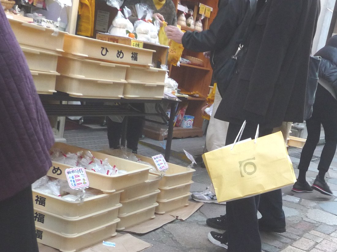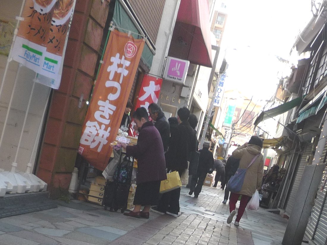 普段は「ハッピープリンセス」というリサイクルショップであるお店の前には「杵つき餅」の幟があり大勢のお客さんが集まっていますが