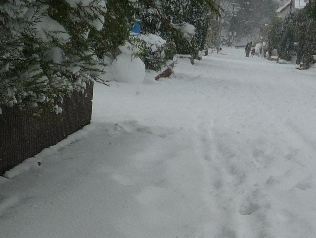 家の前はほとんど車が通っていないので新雪状態・・・喜んでいるのは子供たちだけでしょう