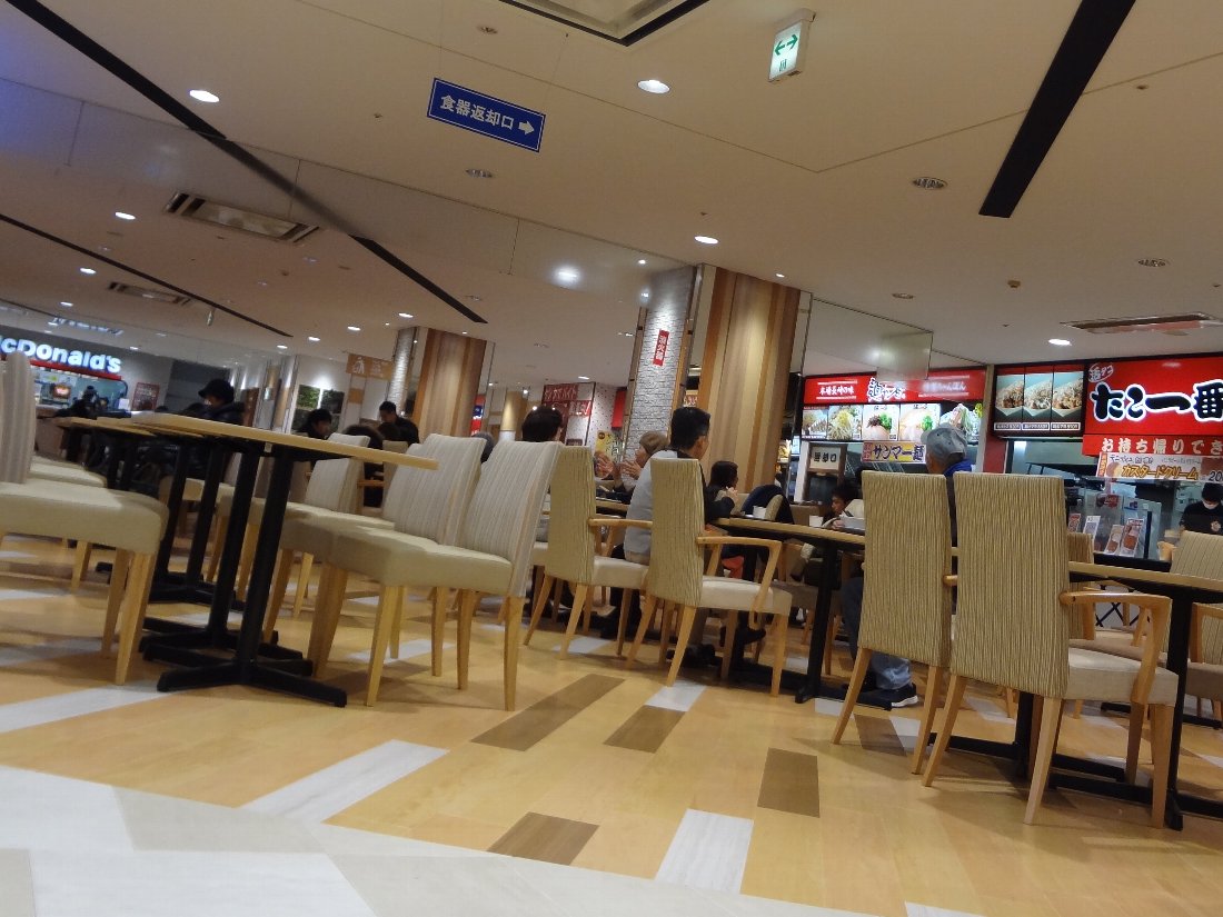 ここのフードコートの特徴は地下にあるので持ち帰り店や夢彩都の食品コーナーで購入した弁当などを食べる人が多く見られる点ですよね