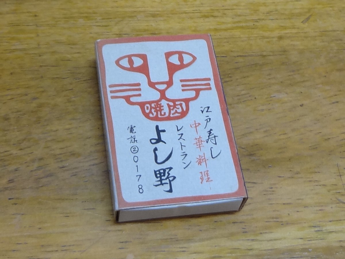 ここまでお店の名前も判らなかったのですがテーブルに置いてあった「マッチ」を見ると「よし野」となっていました