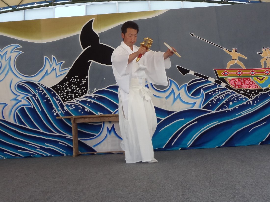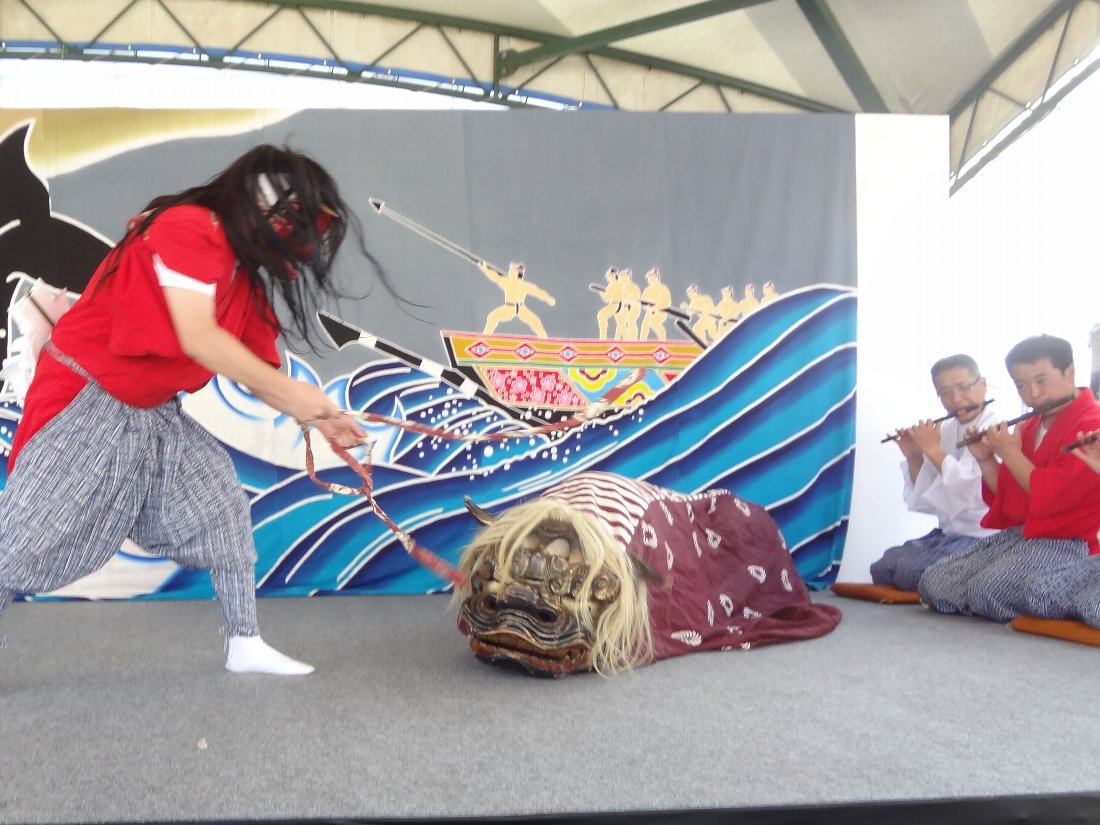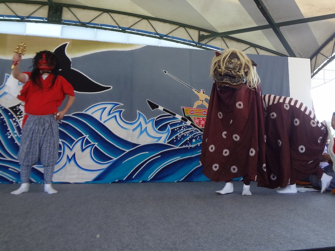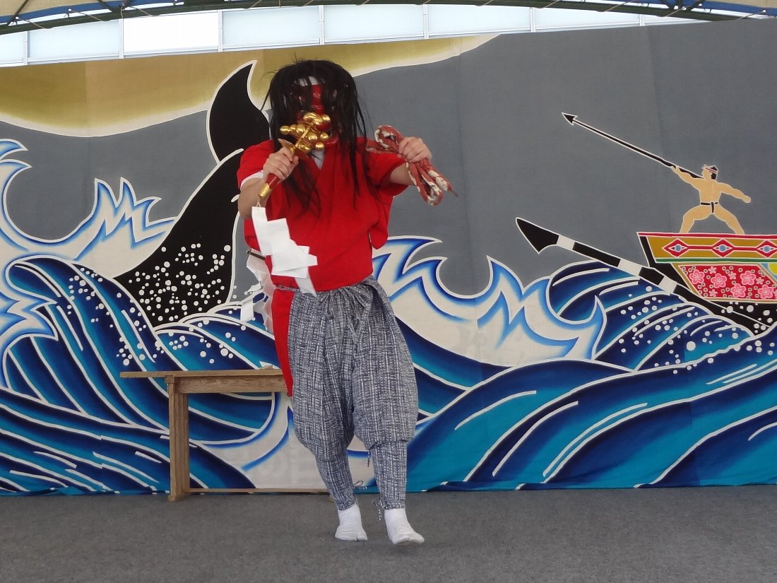 2002年に「国選択無形民俗文化財」に選定されていたのが今年の3月に「重要無形民俗文化財」に格上げされた「五島神楽」ですが今回上演されるのはその構成資産である玉之浦町「白鳥神社」に伝わる「玉之浦神楽」です・・・司会をやっているベベンコビッチさんと長老との会話に出てくるシーンは上演されませんでしたからフルバージョンではなさそうですが「五島神楽」を見るのは初めてです