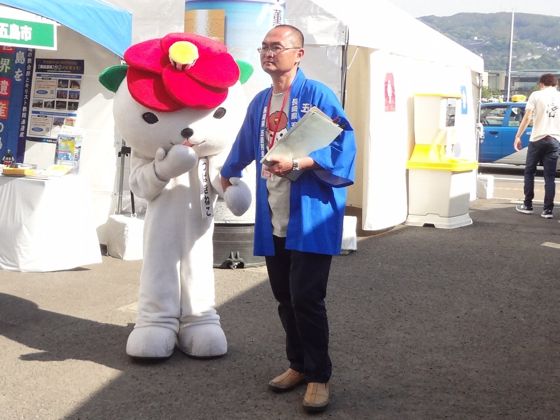 会場の「おくんち広場」に到着するとすぐに出会ったのが五島市のゆるキャラである「つばきねこ」でした(^^)