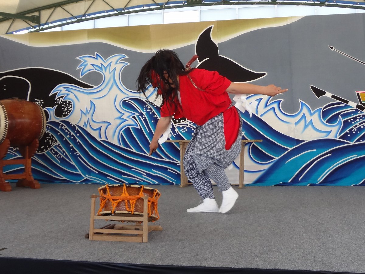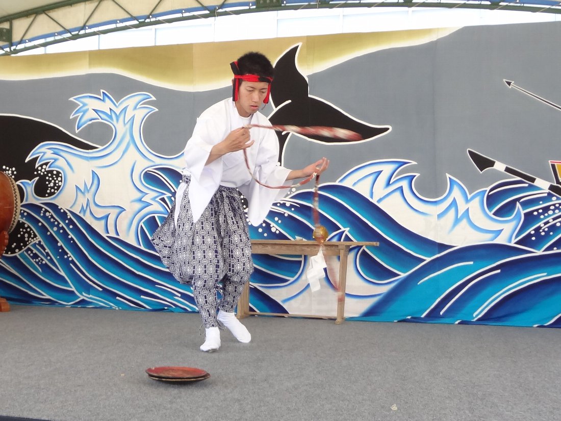 この時間になって再び訪れたのは「五島神楽」を見たいと思ったからなんですがその前に「有川羽差太鼓」というのが上演されるそうです・・・当然初めて目にする郷土芸能ですが保存会会長さんらしき方の解説があったので判りやすかったですね