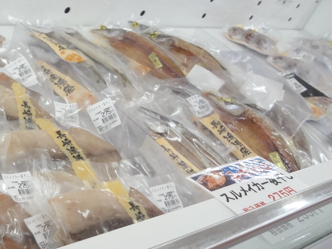 「スルメイカ」「ヤリイカ」「ミズイカ」など価格も1枚200円くらいから1000円以上までいろいろ揃っています・・・まぁ我が家では安いものを買いますが(^^;