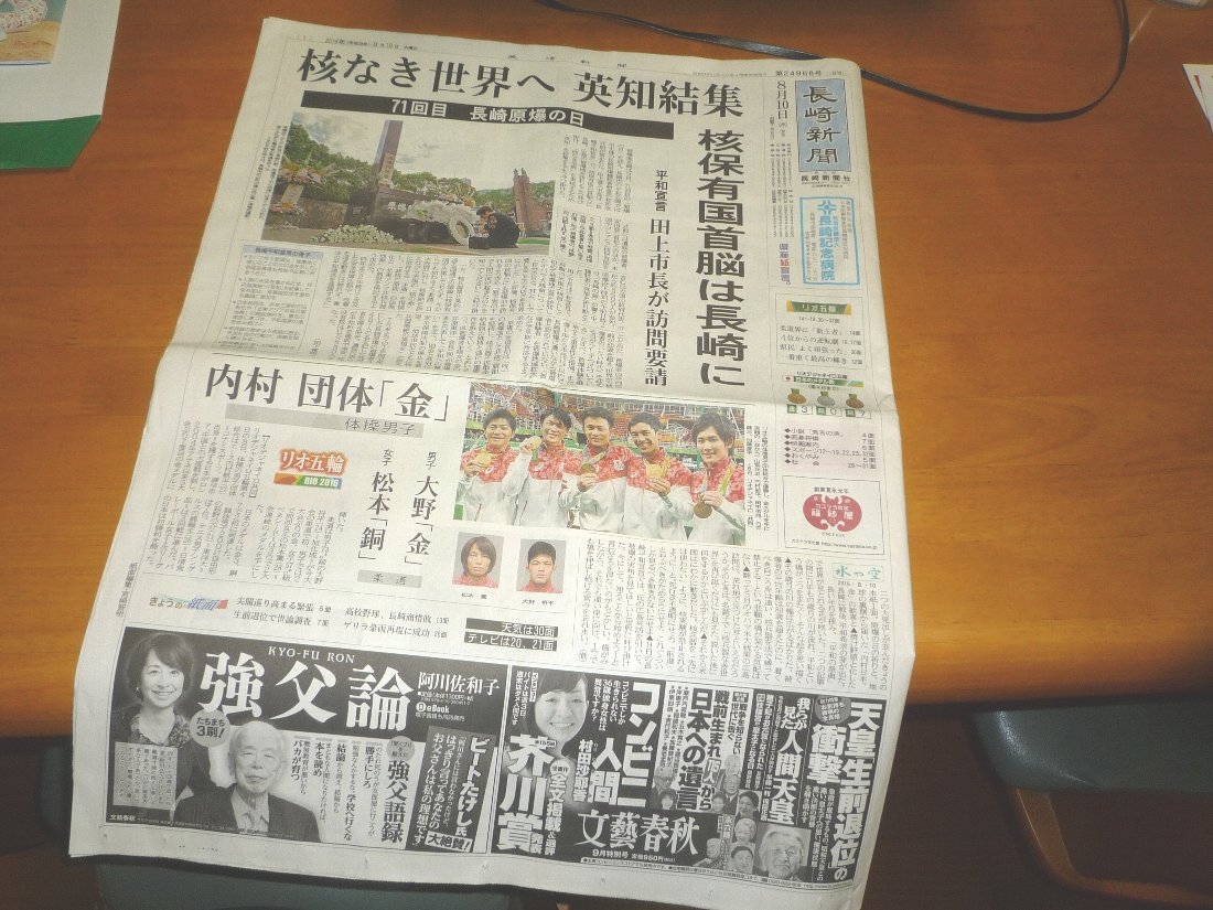 長崎県出身の有名人では福山雅治さんと人気を二分する内村選手ですから「原爆忌」じゃなかったら1面トップだったでしょうね