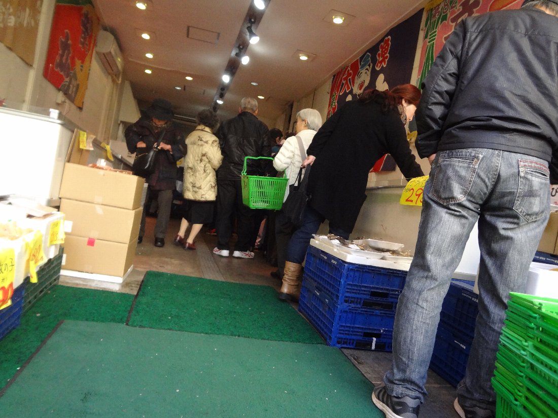 隣に併設された鮮魚の販売所も多くのお客さんで賑わっていますが、こんなに混みあっている魚屋さんは滅多に見ないですよね