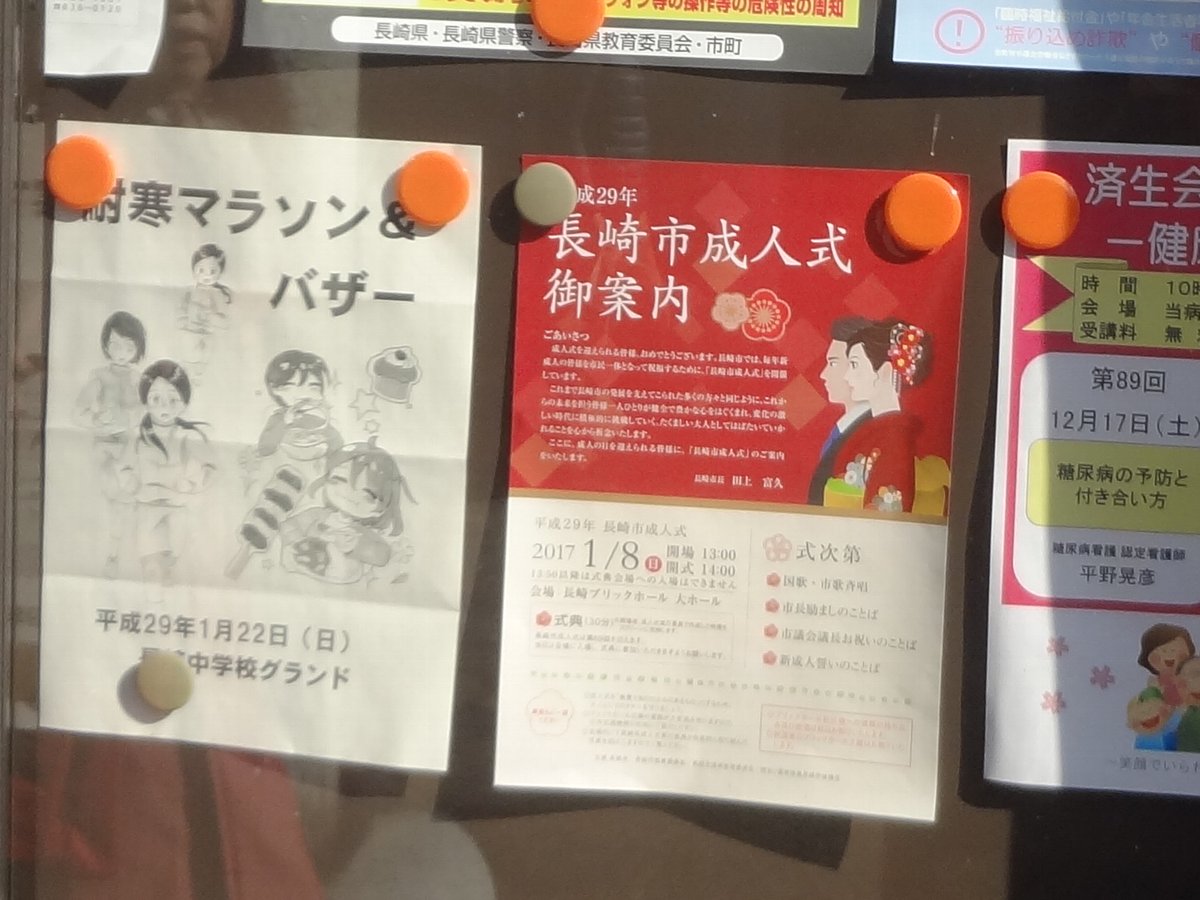 この後久しぶりに新大工商店街に向かうことにしましたが途中で見かけた「成人式の案内」によると来年は「長崎ブリックホール」で行われるんですね・・・まぁ私としては全く興味が無い式典ですが(^^;