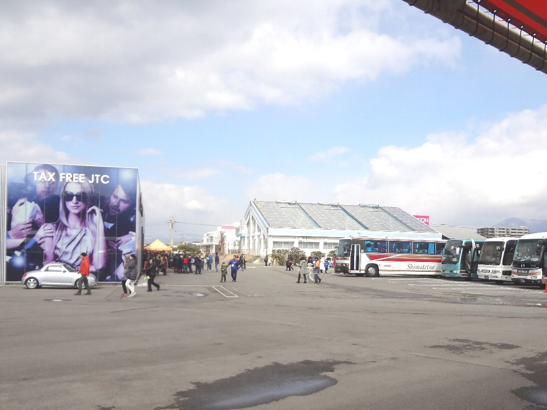 「大村競艇場」の隣にある「 JTC大村免税店」には数多くのバスが停まっていて大勢のお客さん・・・「爆買い」は少なくなったそうですが「買い物」を楽しむ中国からの観光客は多いのでしょうね