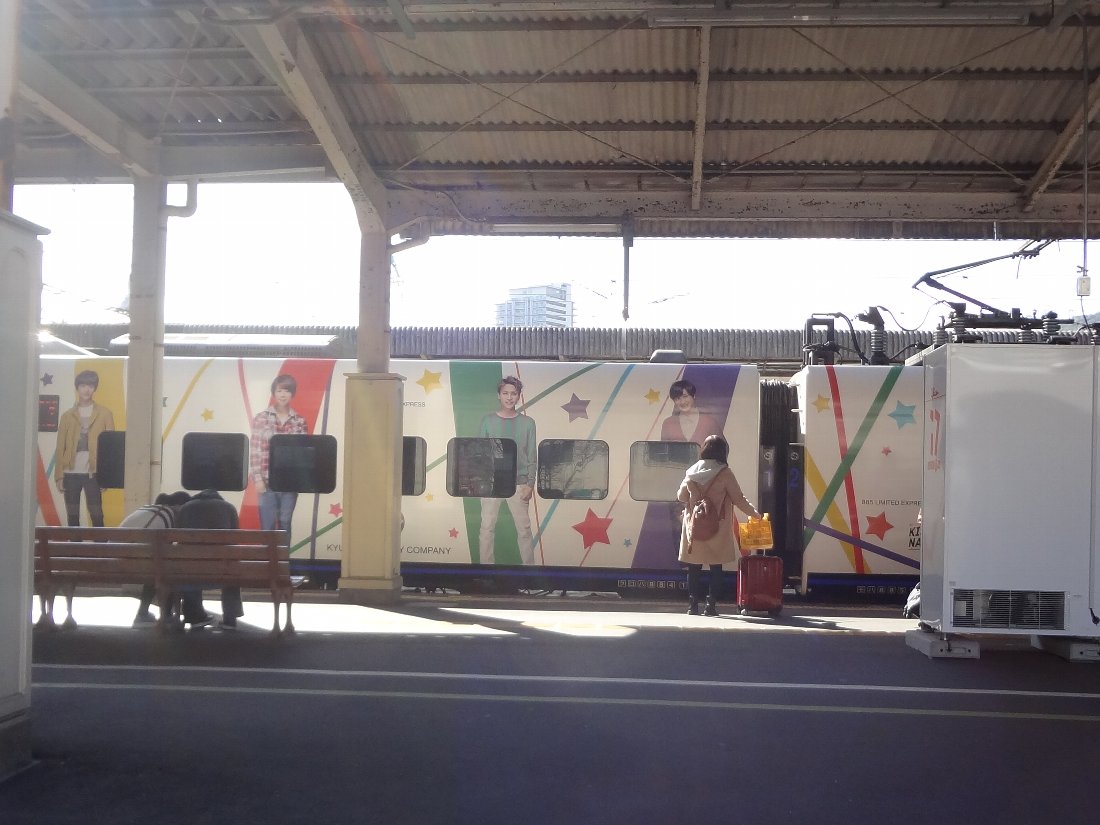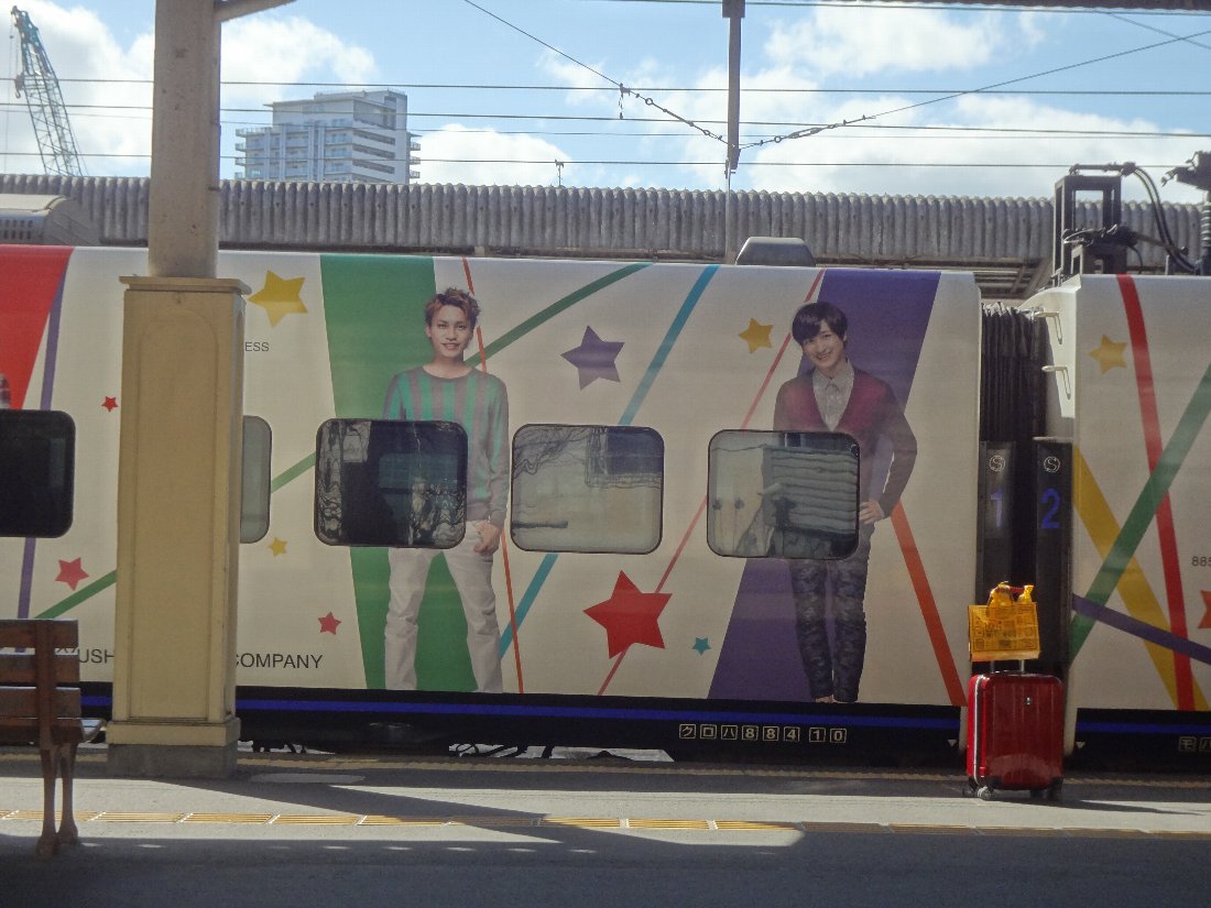 JR長崎駅に停車していた列車にアイドルっぽい人の写真がデザインされていました