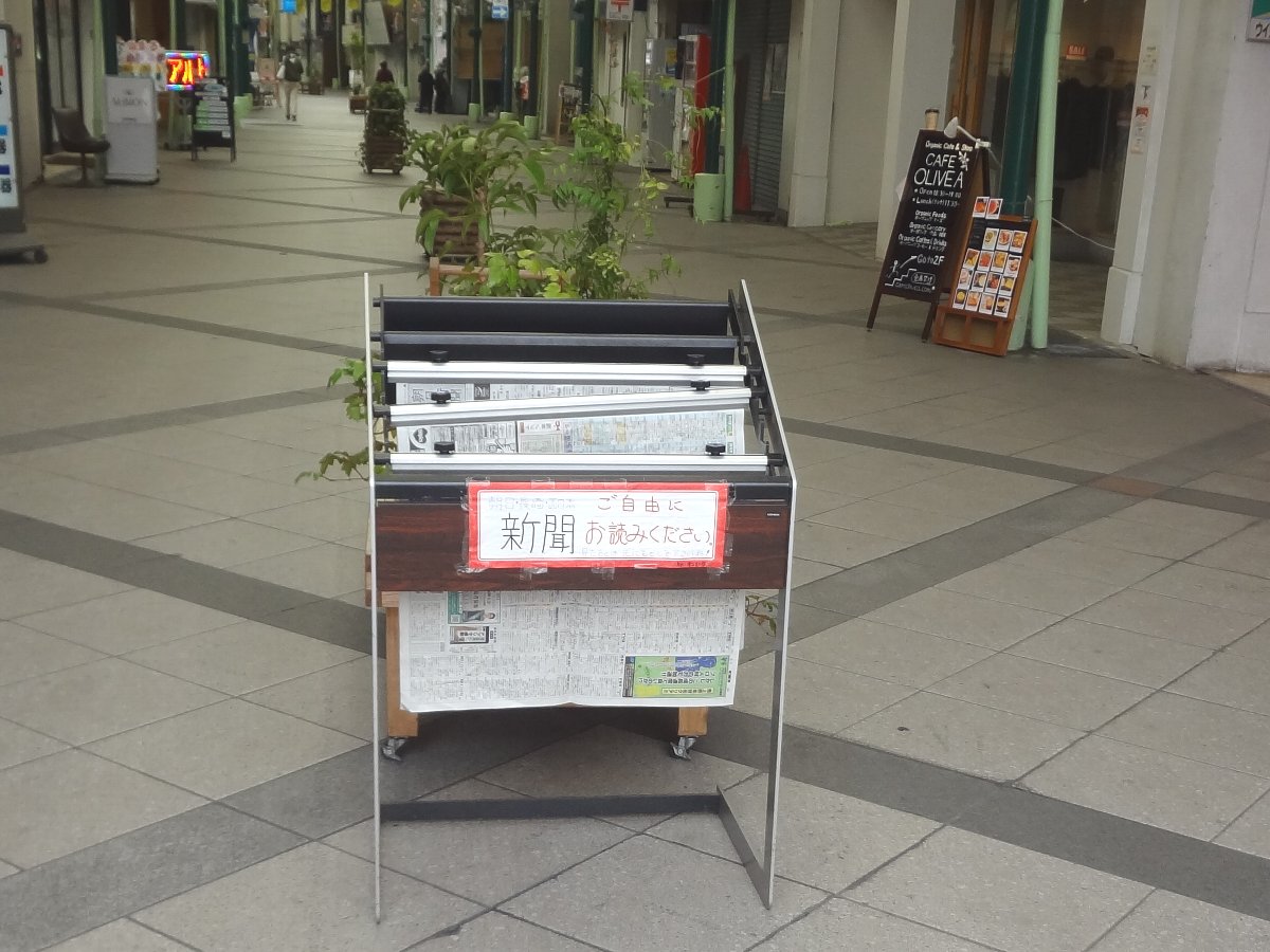 大村のアーケードでは新聞が自由に読めるようになっていました(゜o゜)