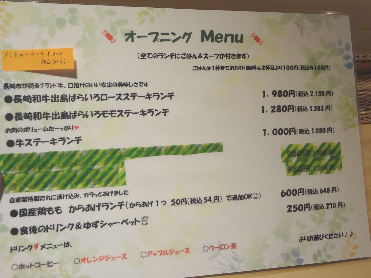 私の目的はメニューの左上に貼っている付箋にある「メンチカツ」なんです・・・このことも「長崎B級グルメ紀行!!」の記事にあったので食べに来ようと思ったのです(^^;