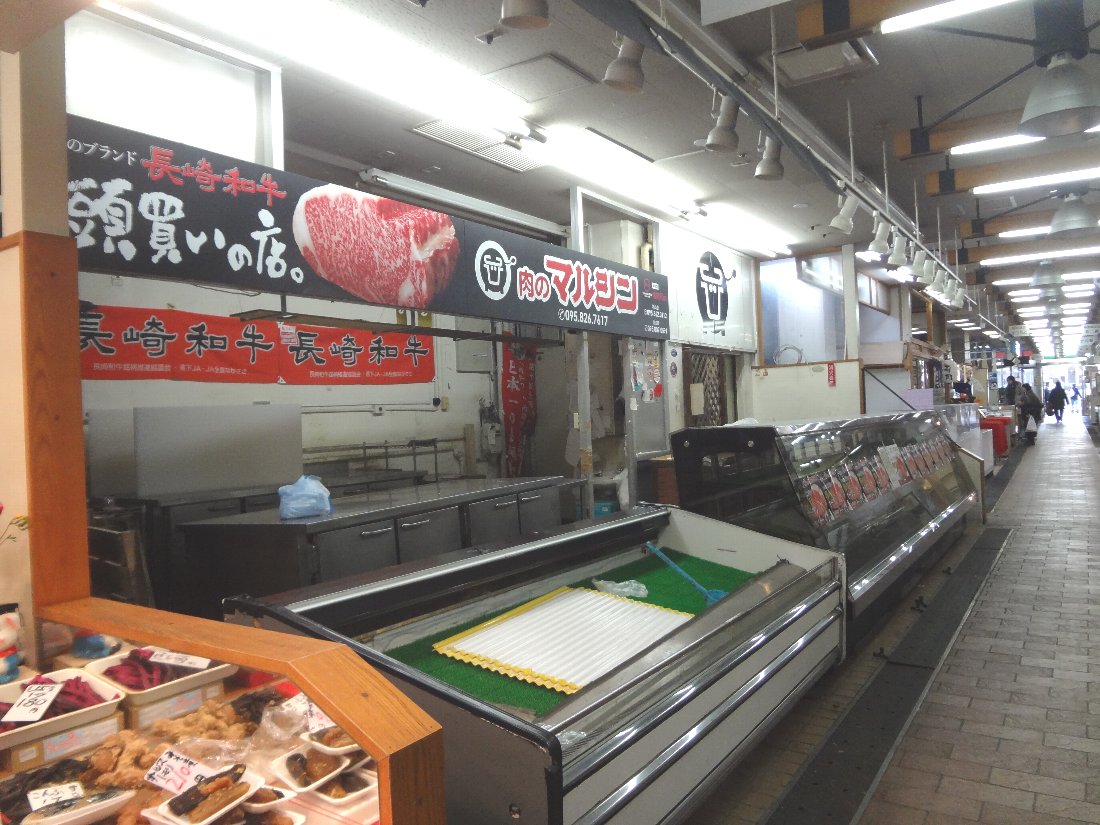目的のお店はこの新大工町市場から移転オープンした「肉のマルシン」に隣接する「お肉のカフェ ミートスッキー(meat sukky)」です