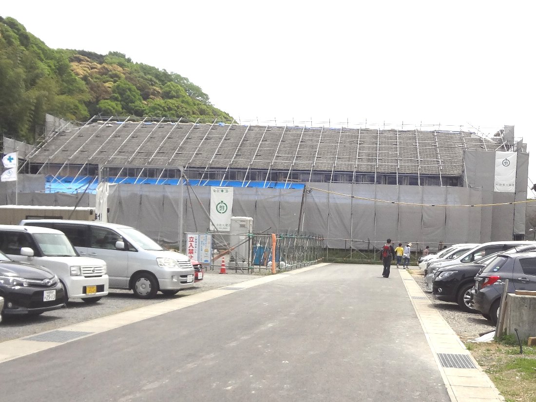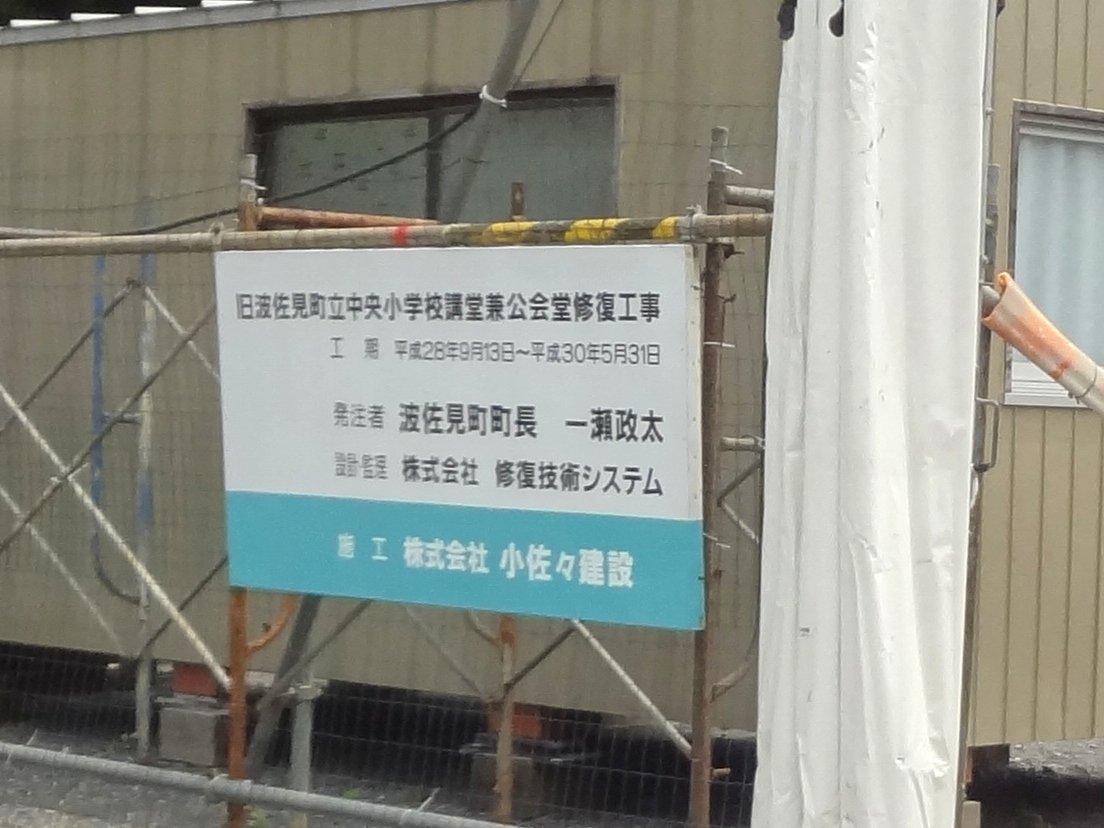 その国登録有形文化財に指定された「旧波佐見町立中央小学校講堂兼 公会堂」は何やら工事中・・