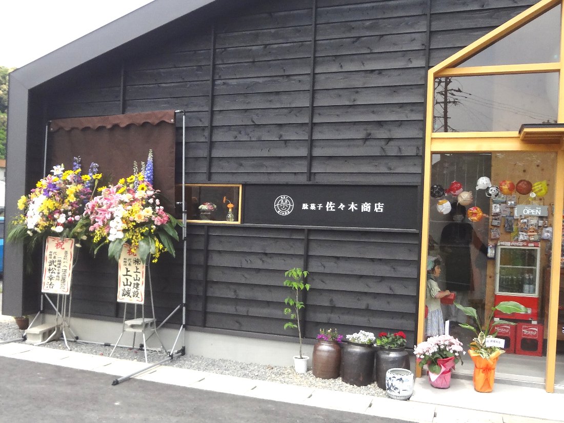 すぐ近くに開店祝いの花輪があったので近寄ってみると「佐々木商店」という駄菓子屋さんがオープンしていました(^^;