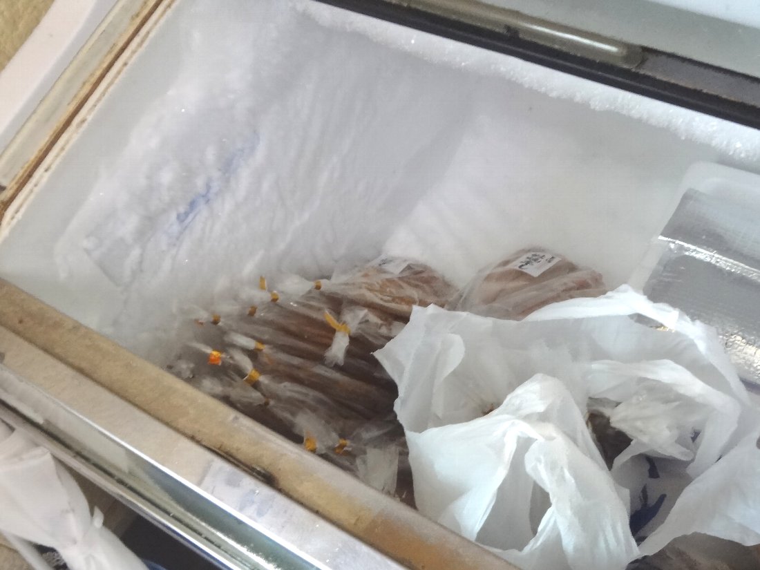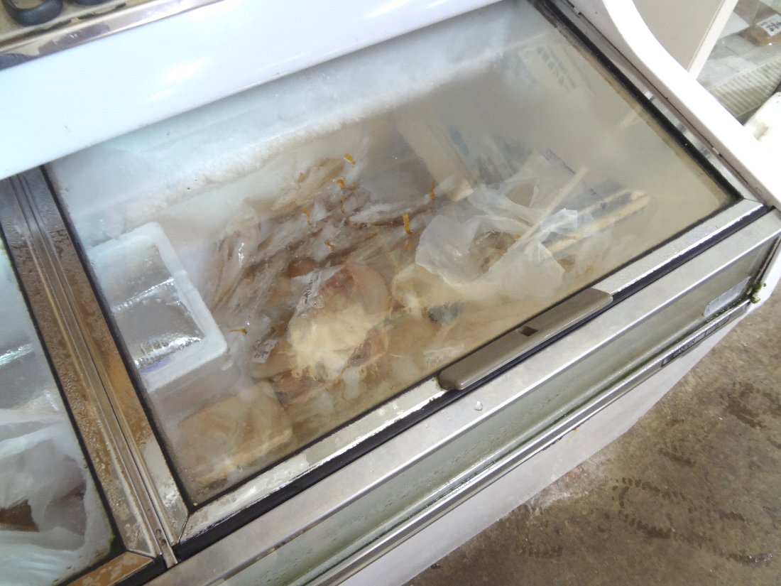 工場内に入ると左側にある冷凍庫が「蚊焼干し」の保管場所です