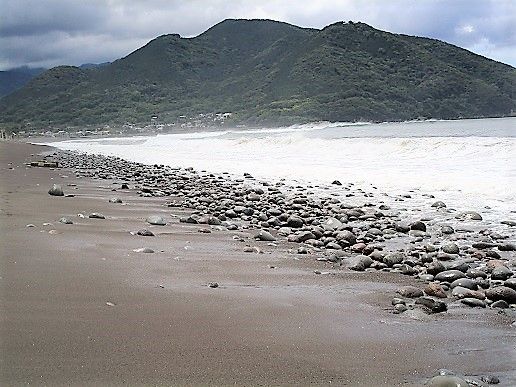 「千々石(ちぢわ)deその日暮らし」さんの画像を見てもとても泳げる状態じゃないですね・・・私が見た時は満潮で岩が隠れていたのです