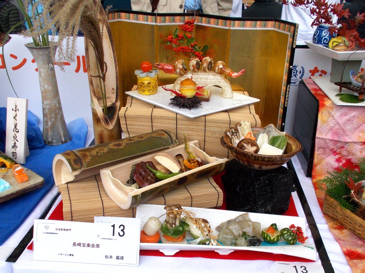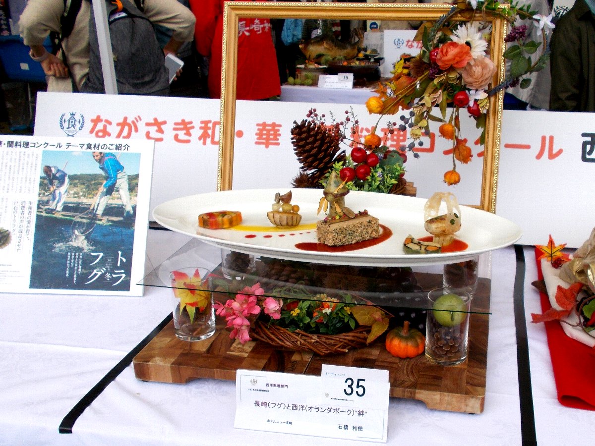 毎年恒例の「料理コンクール」ですが今年は「戸石のトラフグ」がテーマだそうです・・・さすがにホテルニュー長崎のシェフは見た目豪華な作品を作りますね(^^)