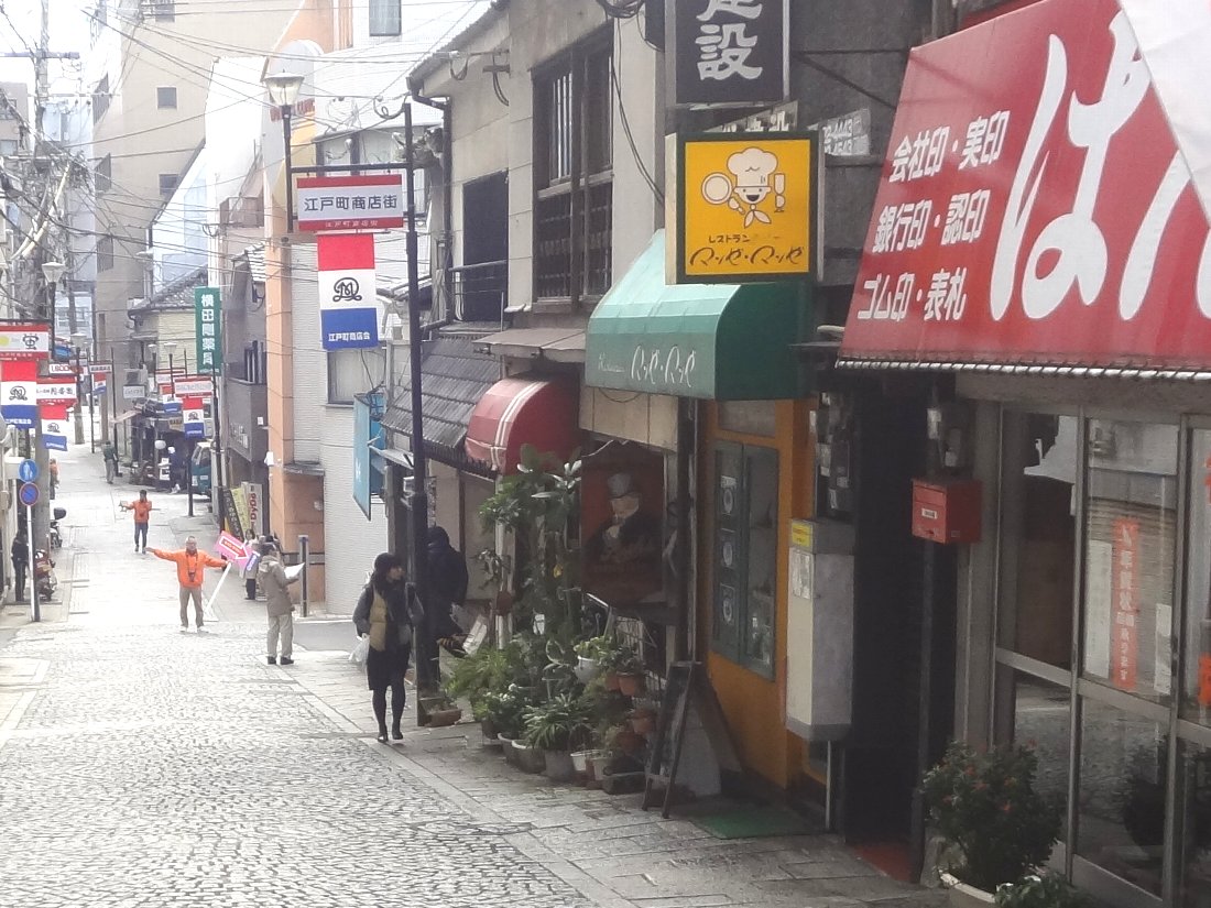 Aポイントと県庁のBポイントを経由して「江戸町商店街」にやってきました