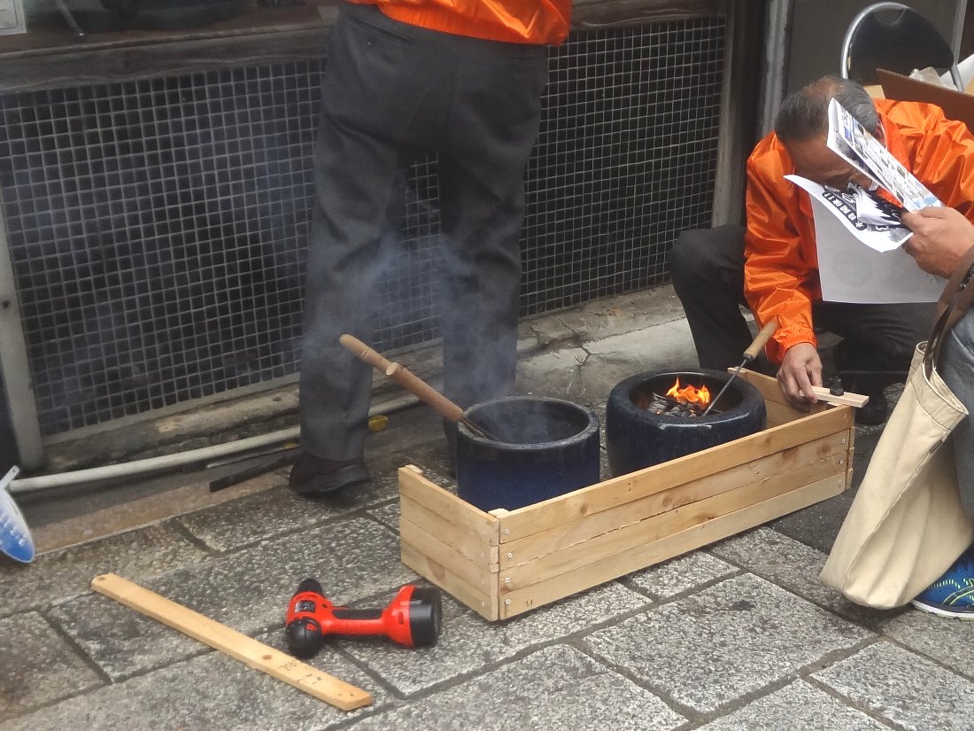 その向かいにある「増崎金物店」では「焼印」を使って木札に印をつけるという催しをやっていました