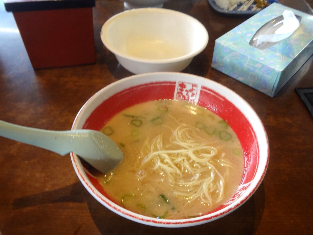 ラーメンだけではちょっと食べ足りないので無料の「替玉」を頼むと逆に多過ぎ・・・係りの人に「半替玉は無いの」と聞いても「やっていないのです」との返答