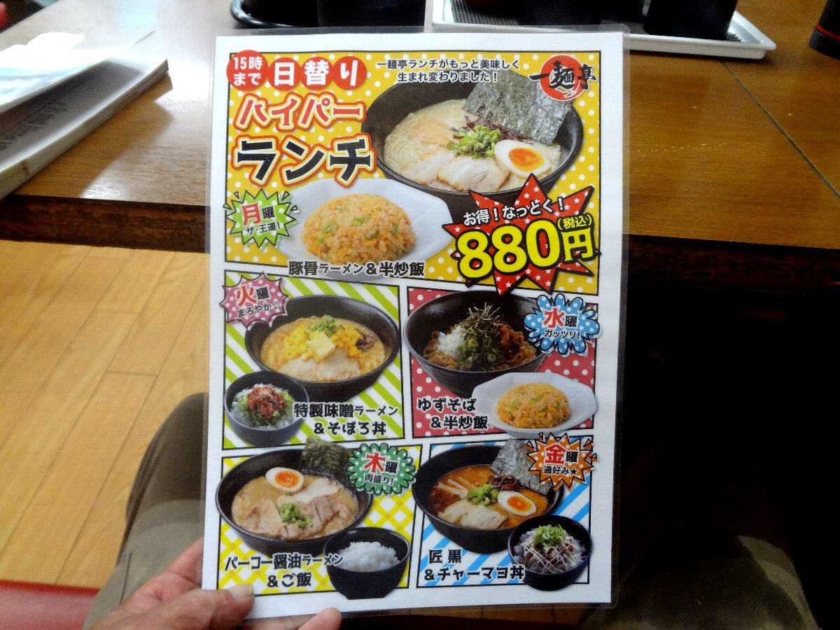 こちらがメインのラーメンメニューですが基本のラーメンが680円税込というのは一緒でしょうがバリエーションは他の「一麺亭」と若干違うような気がします