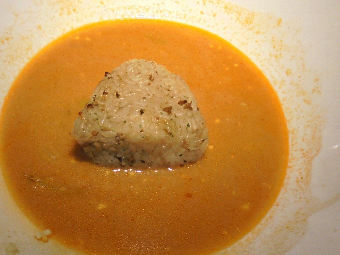 普通の「長崎ちゃんぽん」に比べると独特のスープが美味しいのですが特に食べ終わった後に投入する「ポルチーニ茸入りの焼きおにぎり」108円を入れると満足感がアップします・・・でも用意していない場合もあるので要注意ですね(^^;