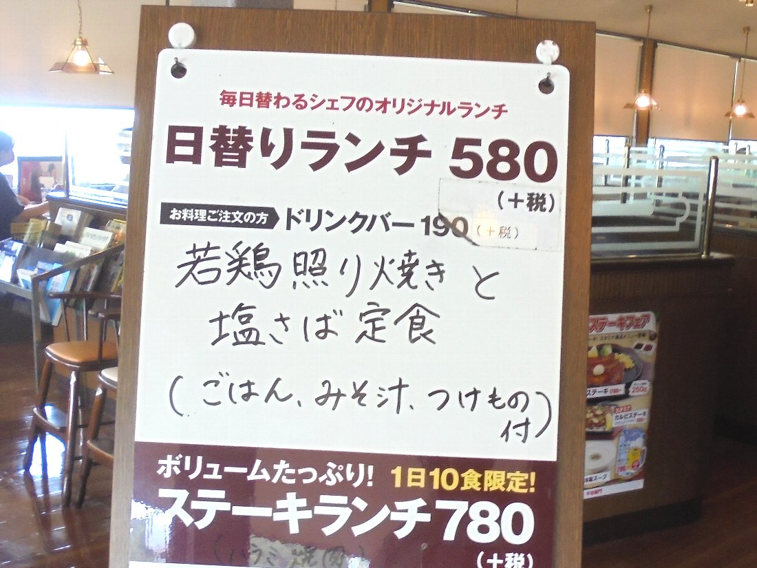 私は日替わりの「若鶏照り焼きと塩サバ定食」590円税別にしました・・・若鶏の味が思ったより濃くちょっと胃にもたれました(^^;