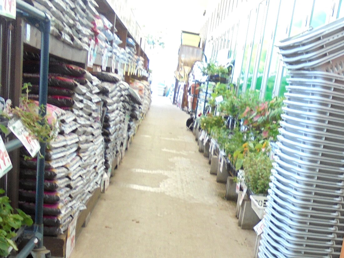 5階フロアには「OKホーム&ガーデン」がありますが通路にこんな用土や花苗を陳列してもいいのでしょうか?