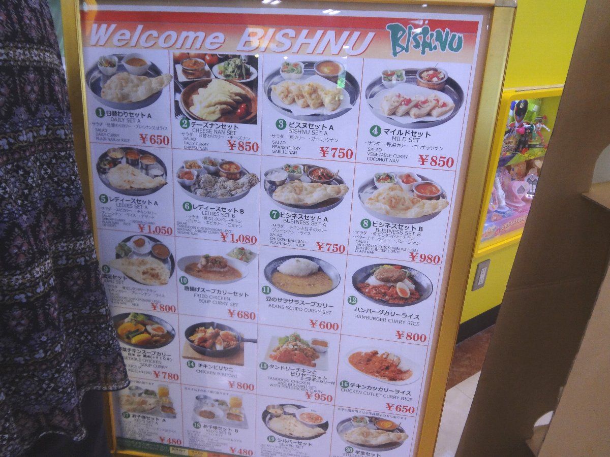 そのマクドナルドの隣にあるのが先月オープンしたのに気づいたインド料理の「ビスヌ(BISHNU)」です・・・このお店のチェーンが「ココウォーク」にあった時に私一人で食べに行ったことがありますがかなり前の話でブログの記事にもしていないみたいです(^^;