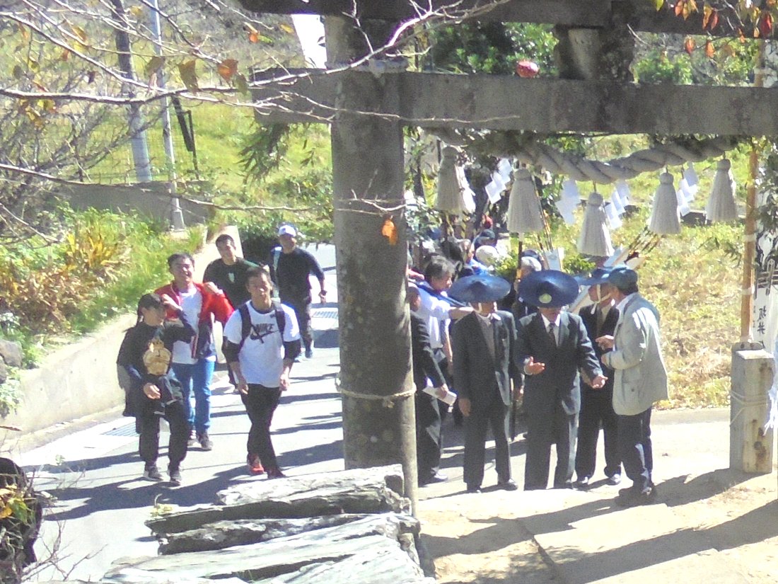鳥居前に参加者たちが集まったところに長崎工業の生徒さんたちもやってきましたし地元の見物客も続々集まってきました