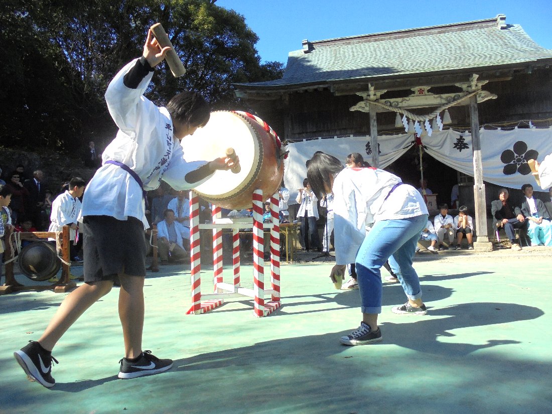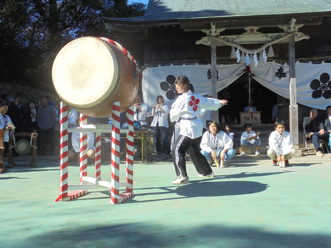 据え太鼓(モラシ)は女の子が担当していて