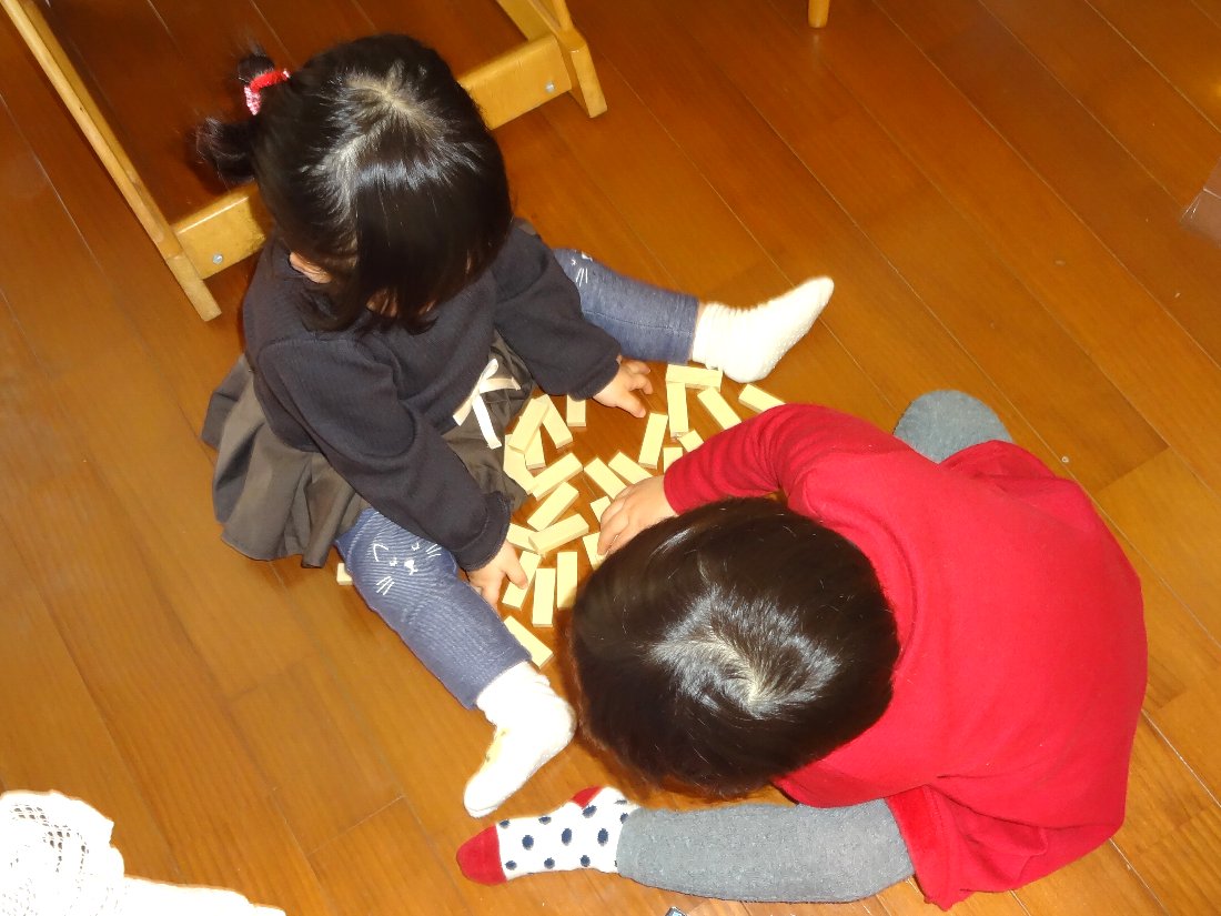 孫1と2は「ジェンガ」というゲームで内容が判らないままに遊んでいます