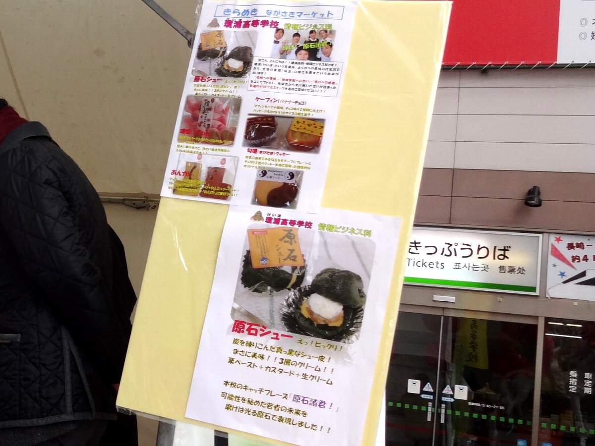 すぐ近くにある瓊浦高校と共同開発した「原石シュー」を販売していました(^^)