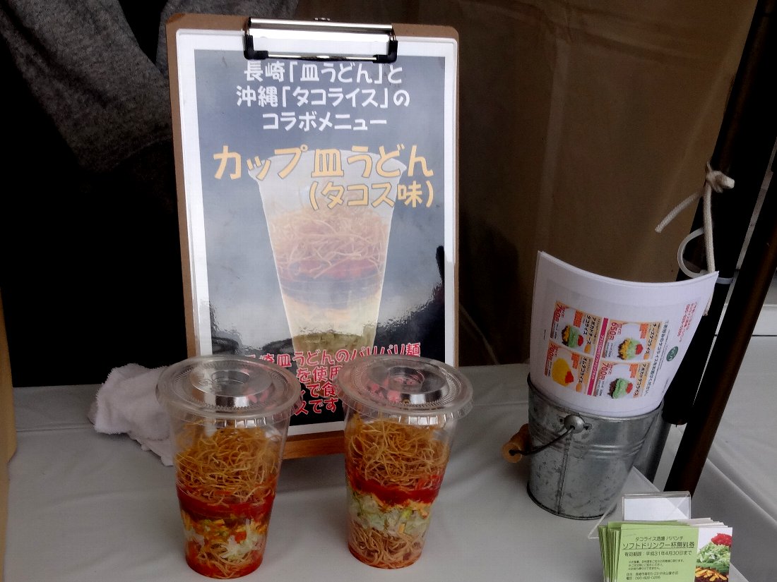 今回一番インパクトがあったのは中央公園近くにある「タコライス」の「ババンチ」が販売していた「カップ皿うどん(タコス味)」でしょうね・・・1カップ300円位なら食べてみたでしょうが500円だったのでパスしました(^^;