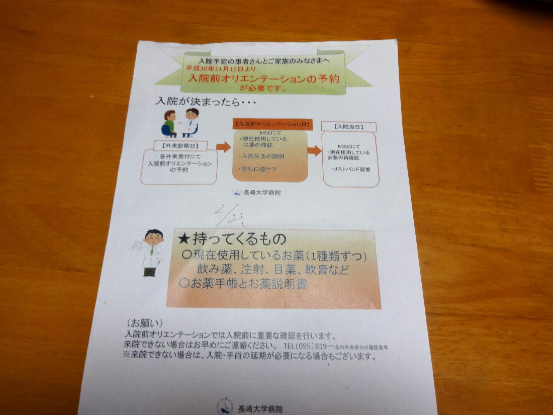 「長崎大学病院」で入院説明会・・・のはずでしたが