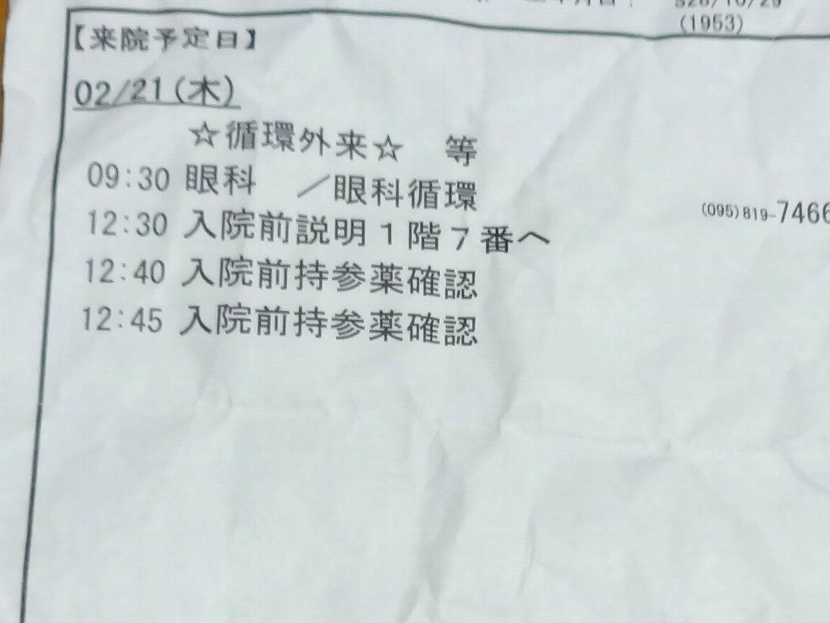 前回の診察の時に渡された「入院前オリエンテーション」の案内に従って普段服用している薬も持参したのですが・・・何と診察を担当したお医者さんから「入院&手術は必要ないでしょう」との驚きの言葉(゜o゜)