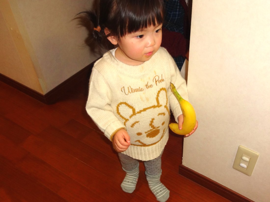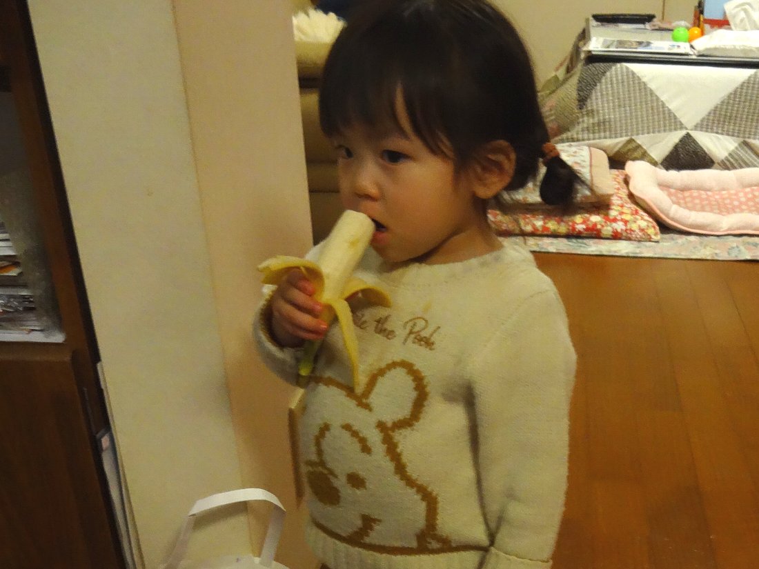 夕食は終わってもまだ食欲はあるみたいで棚からバナナを見つけると