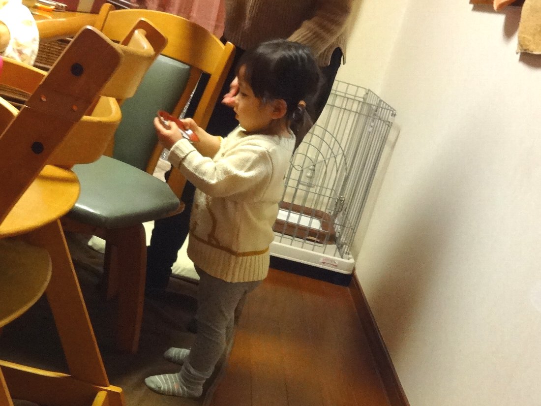 やはりこぼすのも多いので我が家の犬は孫の足元で待機していました(^^;