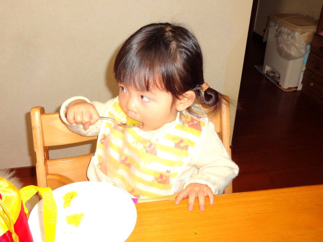 夕食時には早々と椅子に座ってまずは「ミニトマト」と「うどん」を食べていましたが「寿司」なども普通に食べるんですね