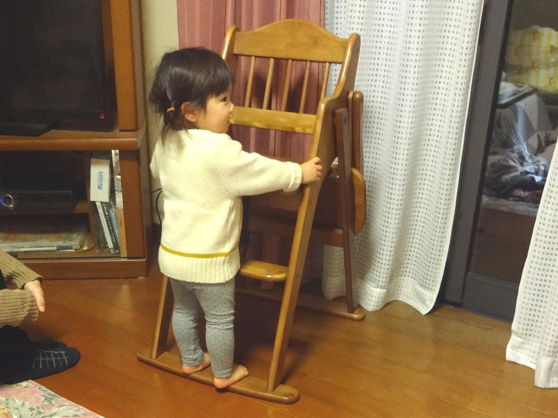 2週間ほど前にゲットした子供椅子を見せると興味津々で
